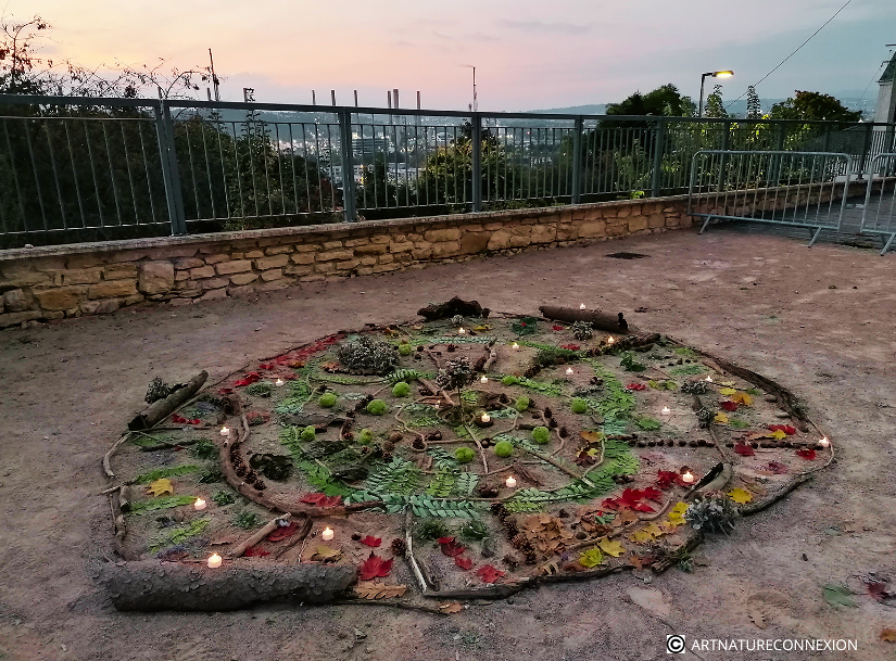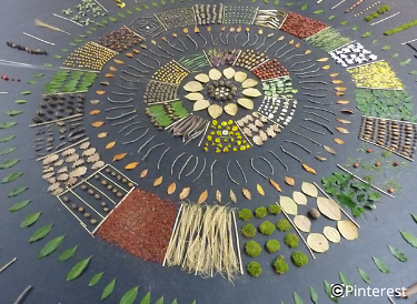 Ce que vous allez faire : Au cours d’une petite balade, collectons ensemble, feuilles, brindilles, fleurs, coques, cailloux... Dessinons à la craie un cercle rayonnant indiquant les points cardinaux, et maintenant il est temps de créer une composition en résonnance avec le lieu ou la saison!